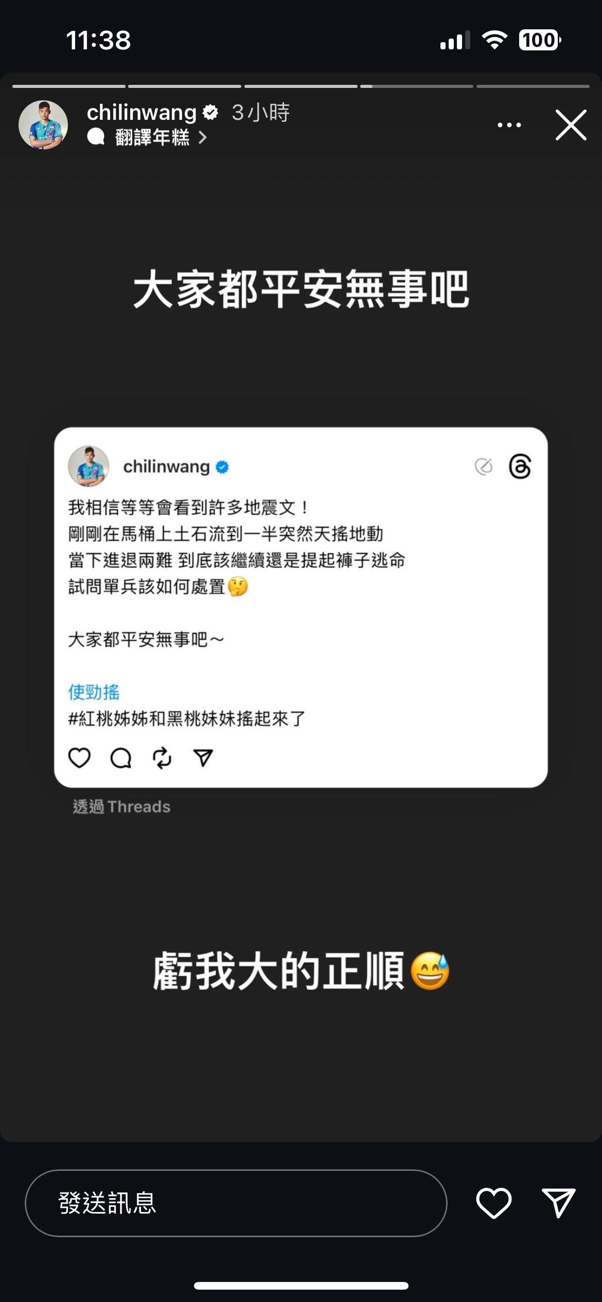 → YiJane : 希望大家都平安 看花蓮災情很嚴重 04/03 11:26