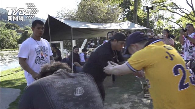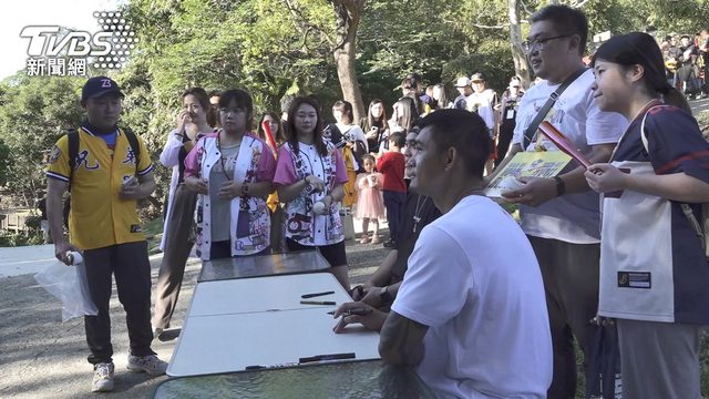 除了猜應援曲跳舞,兩位球員也跟大家一起吃烤肉,台中天氣好,讓球員跟球迷都相當開