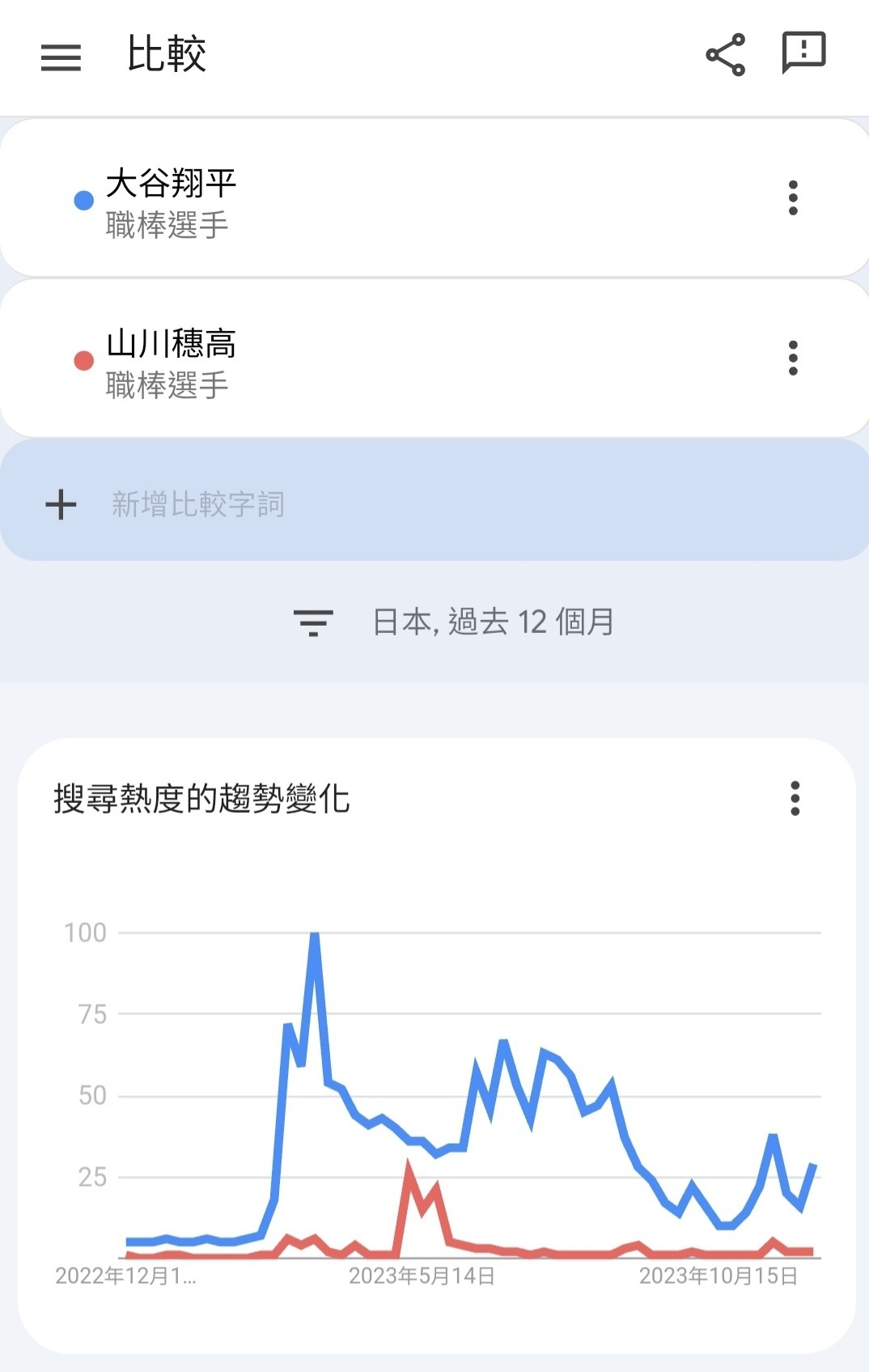 → mutta: 進網站查證一下就好了,是指比起2022的搜尋暴衝最多的,大 12/15 19:46