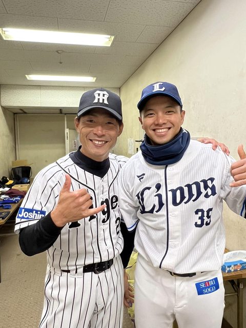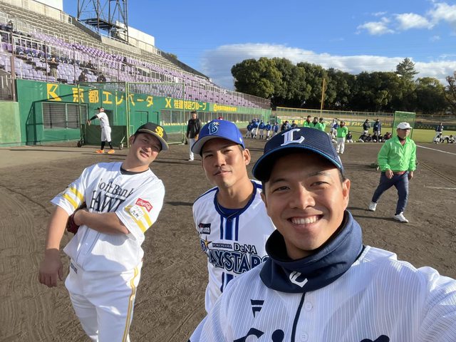 跟其他球團的選手一起指導著小朋友們