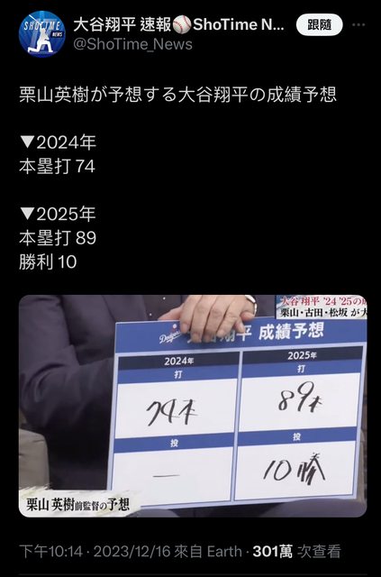 → bj451123: 松阪大輔也有上節目他是看好2024 30支百打點。2025 55 12/17 20:45