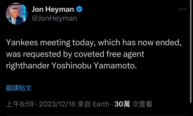 推 gandalflee: 我山本由伸從小有個洋基夢12/18 09:20