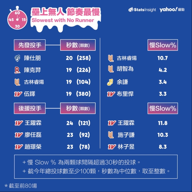 針對投球計時器明年有「新規定」,壘上有人的出手時間從現行20秒減至18秒,壘上無人