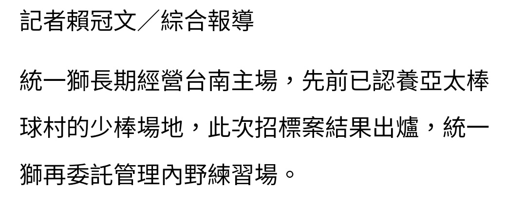 推 misson: 統一只有包少棒球場吧,那兩塊內野後來才弄好的 01/27 16:45