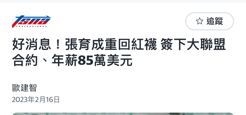 推 O10lOl01O: 這季該不會要中斷持續有台將登入MLB了吧? 01/27 18:51