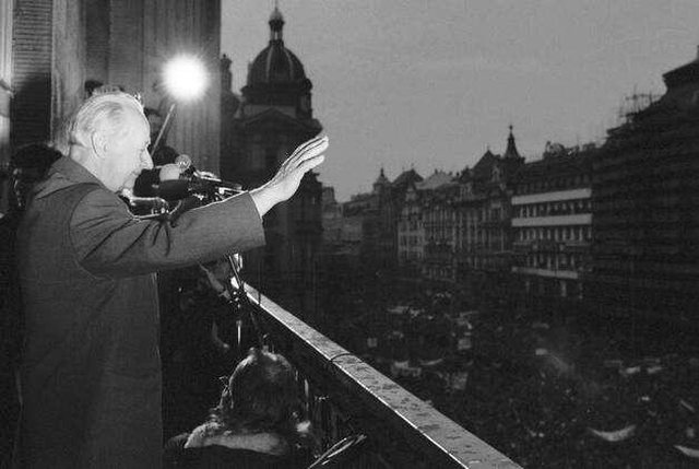 Vaclav Havel 與 Alexander Dubcek 一起向廣場的三十萬民眾致意的那個陽台