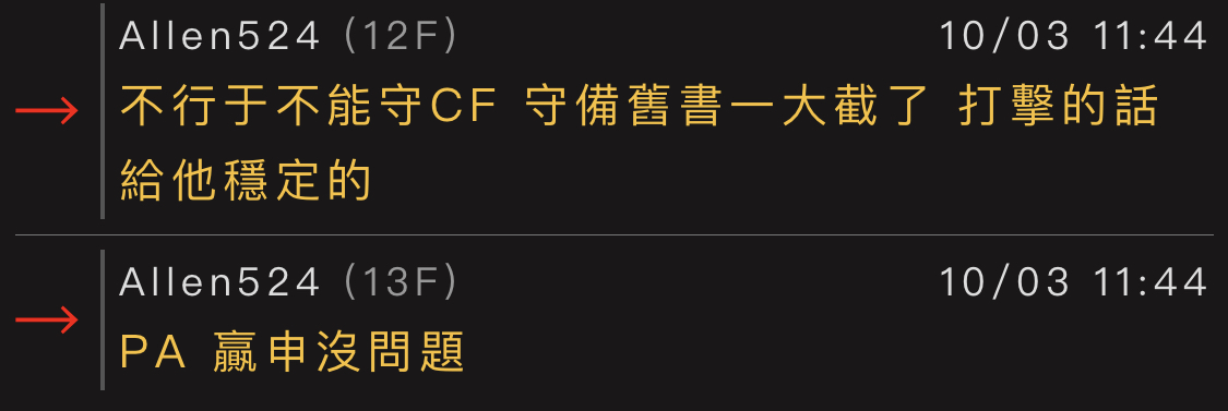 → lrh18: 他就寧願打擊不好輸球 也不要守備不好輸掉.. 02/13 10:28