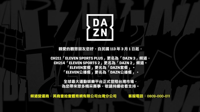 3/01 起,ELEVEN SPORTS 正式更名為 DAZN