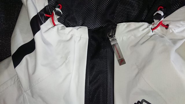 另外,通風部分,以全防水的外套來說, 進氣口蠻有效讓它有有著一定程度的透氣性的。 但排氣的部分,看起來是太小,無法應對進氣的大流量。 這會導致有些空氣會在外套內滯留,外套內就會被氣體撐起導致有點鼓。 雖然不會太誇張,但就是明顯有感的程度。 《推薦評價》 說真的沒有很推薦,尤其是售價偏高的情況下,這樣的保護性難以推薦。 但如果是純日常通勤,速度偏慢的使用,或許還是可以用,至少可以少帶一件雨衣上衣? 就個人而言,會推薦真的要跑山用的話, 選擇可單穿的護具衣在內,再套上去會更好啦,只是這價錢這樣做真的不值得。 《相關補充》 Amenite 這系列其實有改款,目前介紹的聯名款是 K-2365。 耐水壓:10,000mm 透濕性:5,000g/㎡/24h