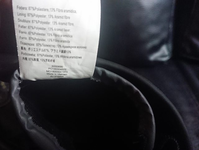 內裏的 Kevlar 則是以手背為主,沒有延伸到袖口。