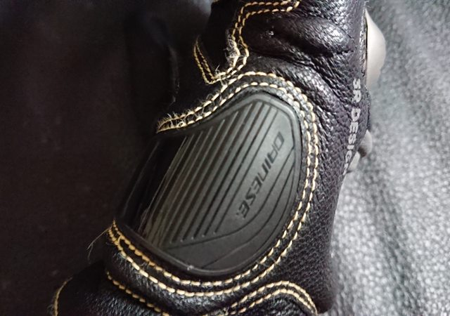 手掌下緣外側則是硬式的滑塊設計,上方帶有 Dainese 字樣。