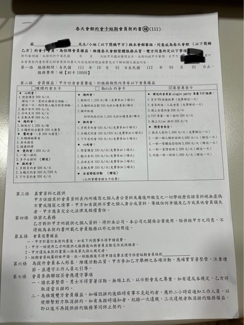 之前秘書說有一個「專屬愛情顧問」的方案,但紙本簽的約與秘書所說的不一樣,當下秘