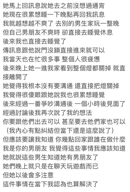 → dabiann : 為女朋友本來就不能去跟別的男生玩到三更半夜。」02/17 18:27