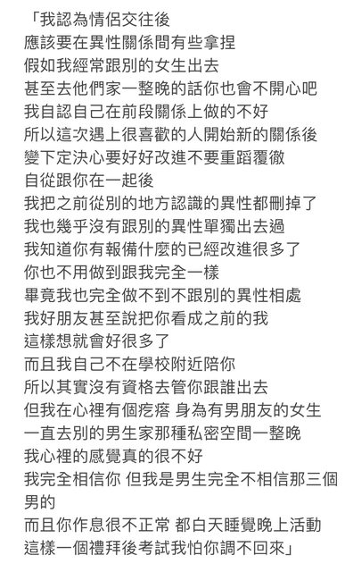 推 sooge : 沒救了= =,你不能限制她不能跟男生好友在一起,這 02/17 18:22