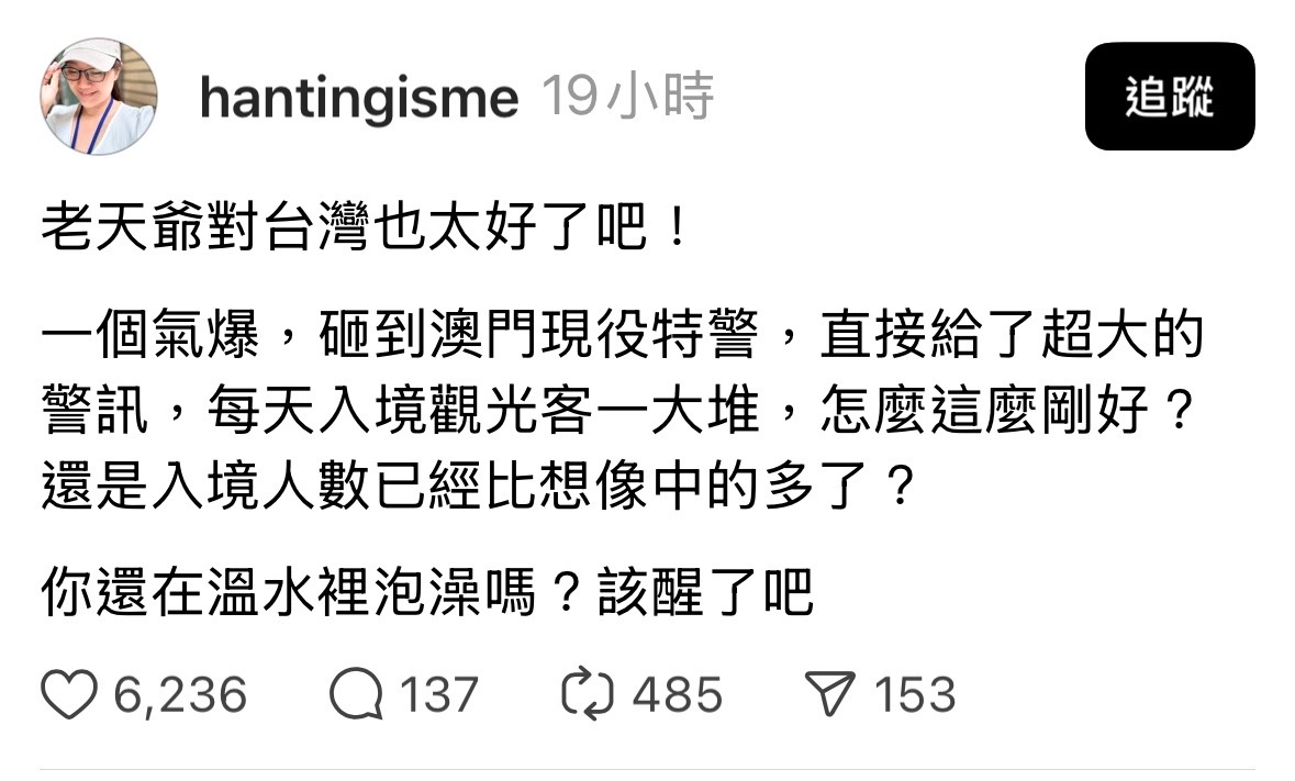 → ilove640 : 寫 還救了老外當英雄 台灣人也是末日後勢力最大的 02/18 02:08