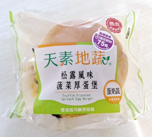 【商品名稱/價格】:天素地蔬-松露風味菠菜厚蛋堡(蛋奶蔬)/59元