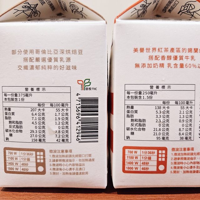 看拿2瓶較便宜,先看了咖啡拿鐵熱量,覺得1瓶200多大卡喝2瓶太超過了,於是再看別的… … 另一款紅茶拿鐵熱量才140?還以為划算(熱量上來說)。但仔細一看竟是每份的單位算法 不一樣! https://i.imgur.com/iGEvyOe.jpg