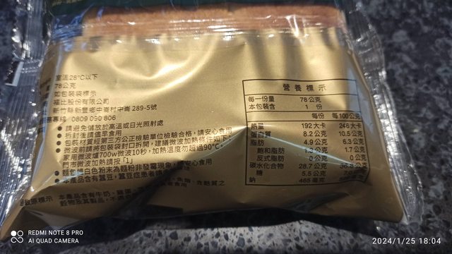【規格/內容物/熱量】:麵包/192大卡