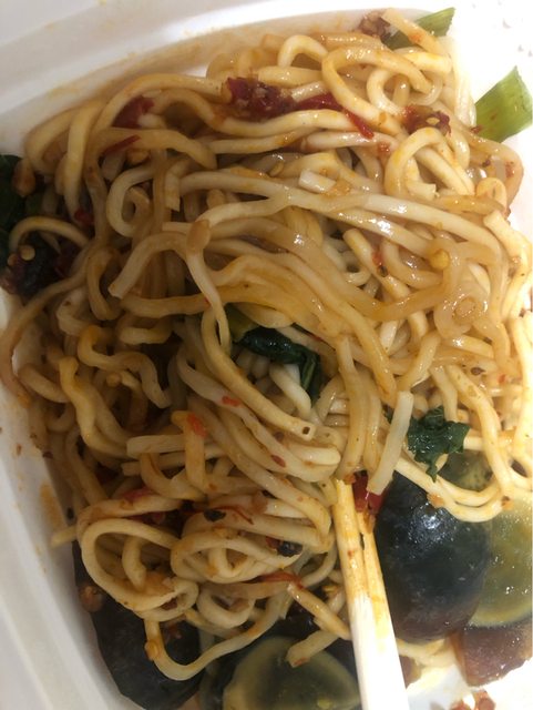 辣醬的部分其實有點過鹹,但整體的搭配上比其他市面上有看過的微波皮蛋拌麵好多了