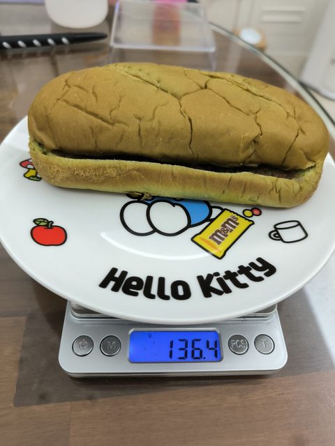 內餡充足,除了頭尾那兩口咬不到內餡外,紅豆稍微甜,但綜合了整個麵包的甜味,麻糬
