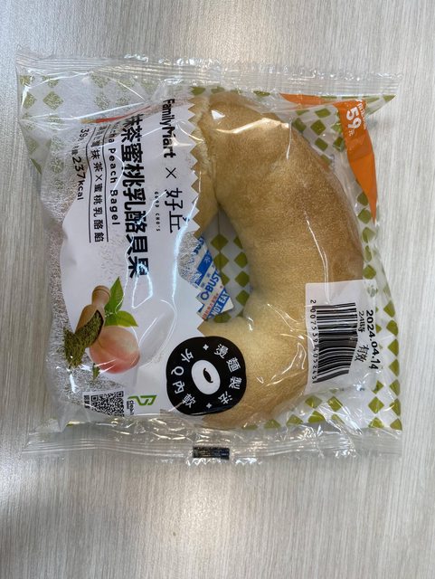 標題全家綠茶蜜桃酪貝果食用心得分享