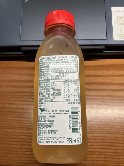 【規格/內容物/熱量】:400毫升/水.蘋果濃縮汁/179.2大卡