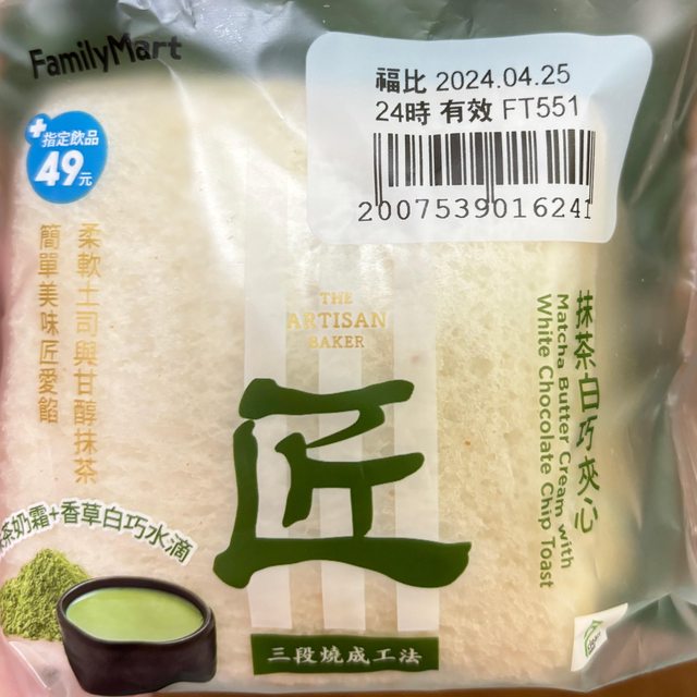 標題[商品] 全家 抹茶白巧夾心土司