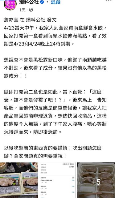 : 水餃發霉「以為黑松露」他吃2顆腹痛衝急診 超商回應了