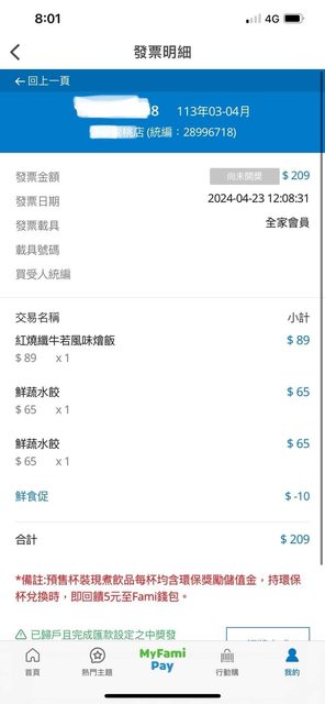 原文有貼發票 全家鮮蔬水餃 一盒65