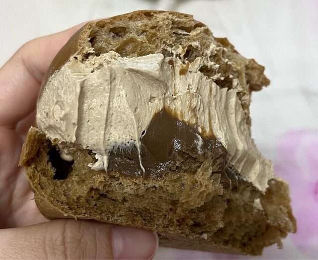 要咬得比較大口才會吃到裡面的巧克力鮮奶油