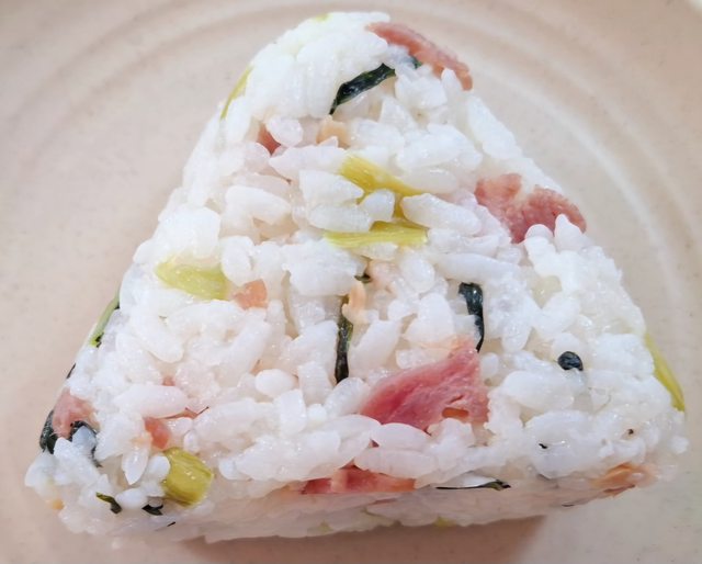 這款「上海菜飯飯糰」台灣超商比較少見的沒海苔版本