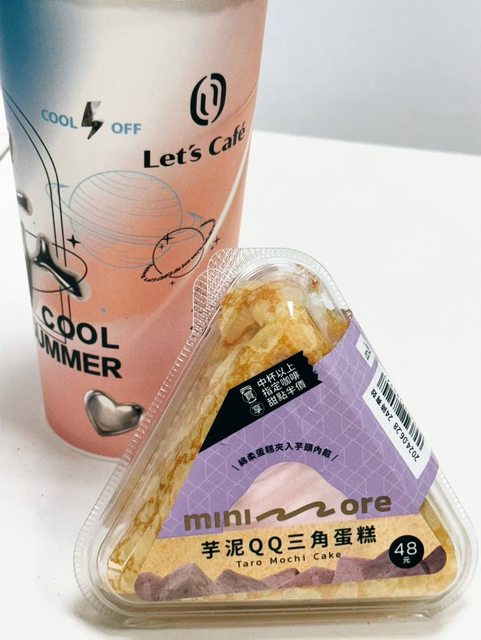 【商品名稱/價格】: 全家 minimore芋泥QQ三角蛋糕/$48 搭配中杯以上飲品甜點半價
