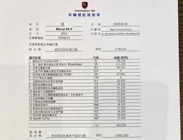車輛品牌/產地/出廠年月:porsche 2020年10月