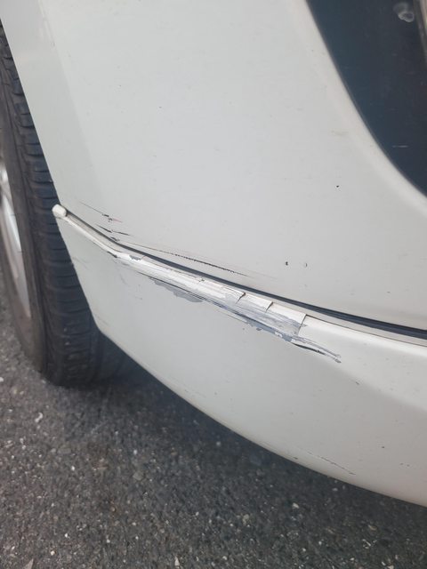 左前門邊,路邊停車後,被A到小傷痕,報案單如照片