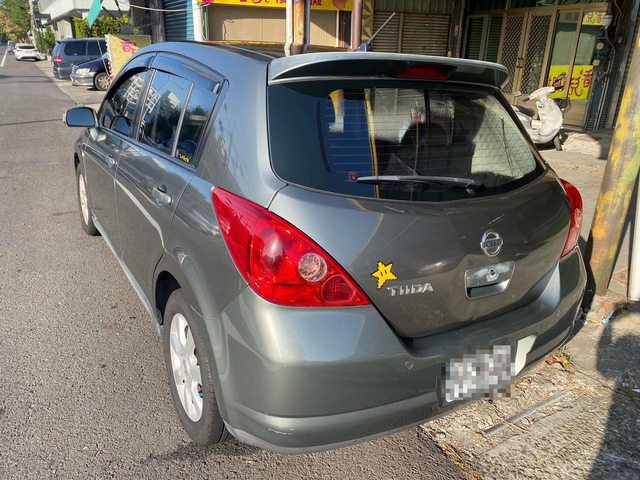 Nissan Tiida 五門 1.8 頂配版。這台車有電動天窗、倒車雷達、倒車影像、HUD 抬頭顯示器、定速系統、i-key。