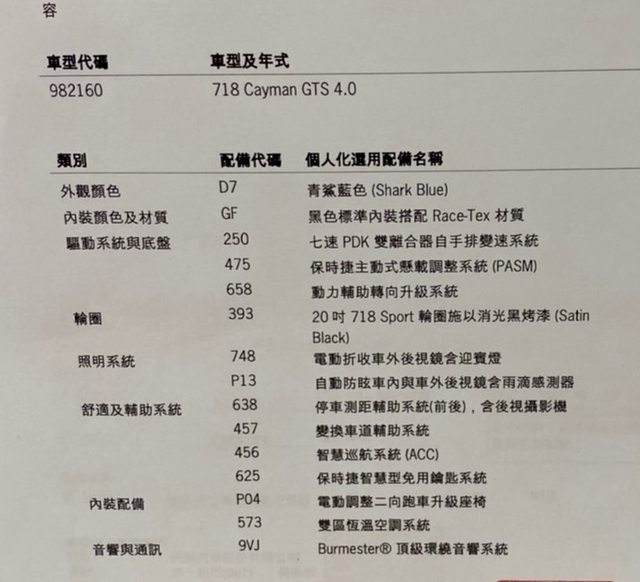 車款型式/排氣量:718 Cayman GTS 4.0