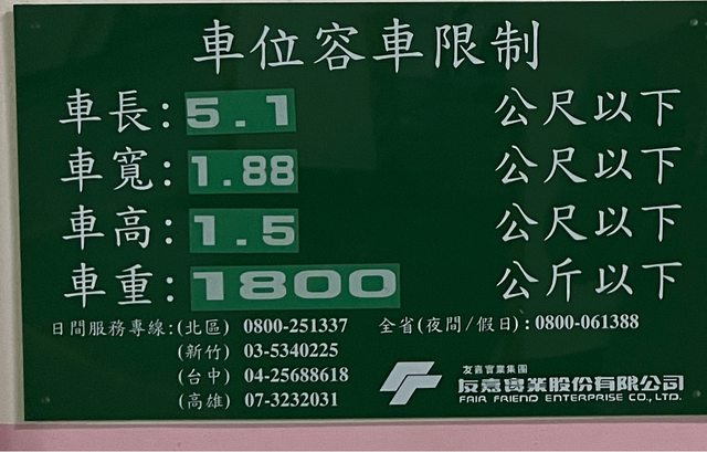 補上機械車格條件: