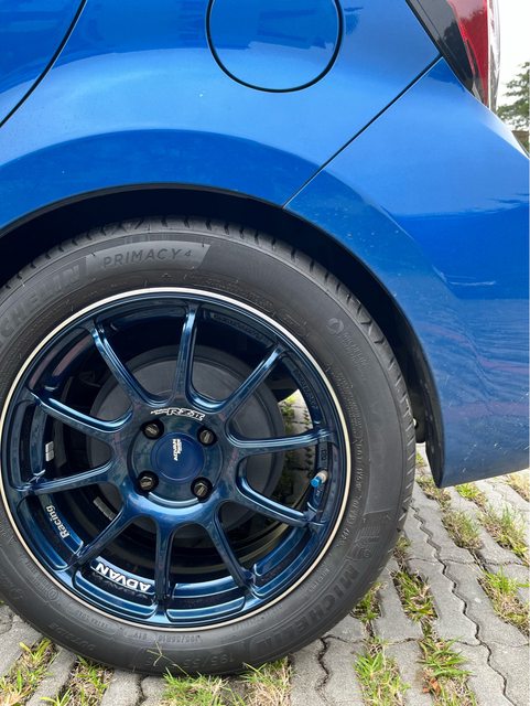 標題[週邊] Prius C 原廠框+胎 / Advan孔蓋