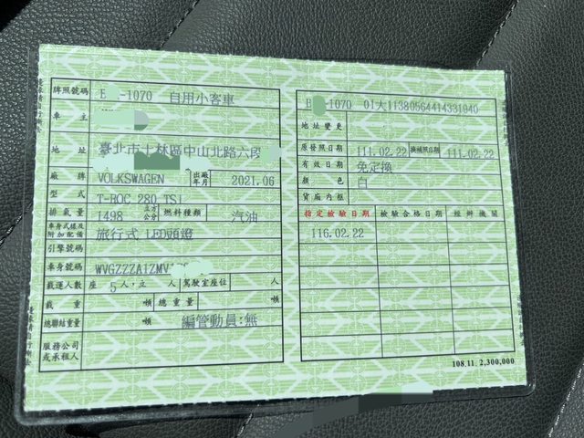 前車主第一手的行照,2022.2.22領牌