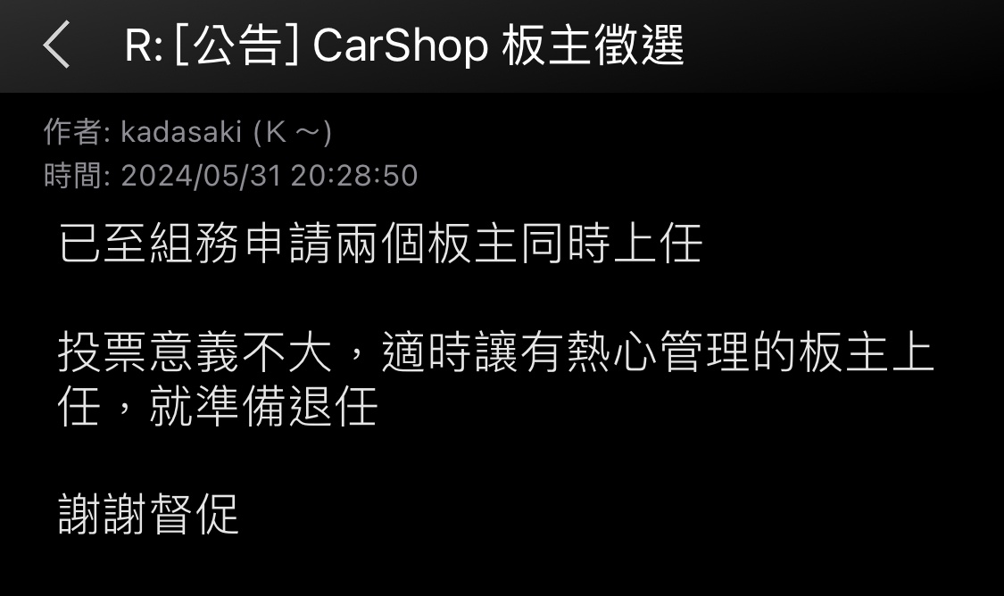 鑒於carshop板沒有實際上的板主己久,