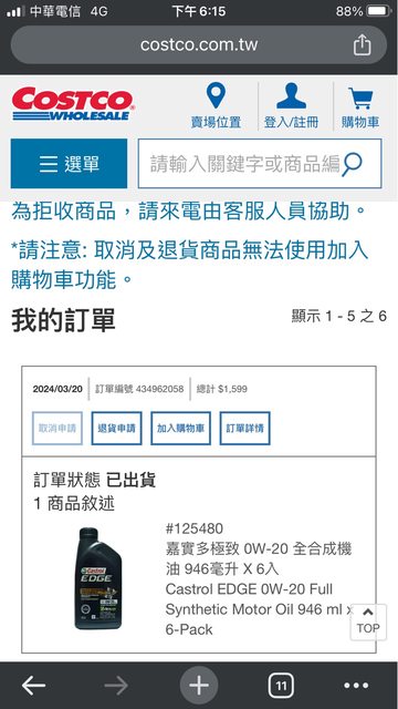 2024三月在Costco網路購得,車賣了剩三罐