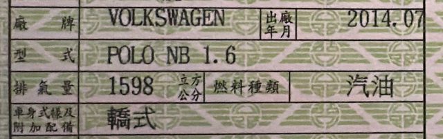 2.行照寫Polo,車尾寫Vento,故兩種型號皆備註。