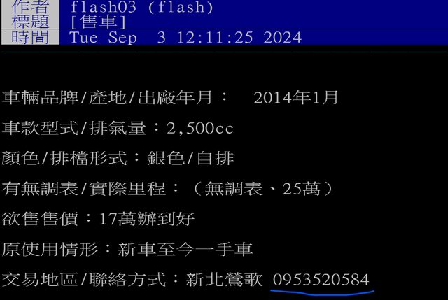 ※ 文章網址: https://ptt-club.com.tw/CarShop/M.1725423507.A.2A7