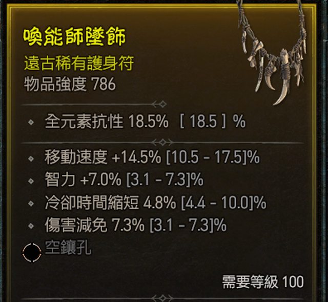 標題[競標] D4 100等項鍊 跑速/智力/-CD/傷害減免