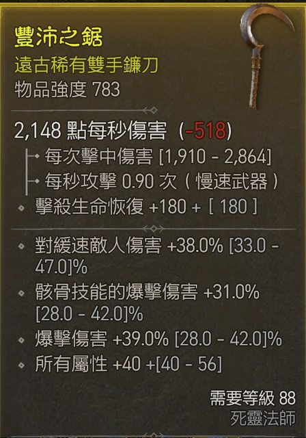 2. [300萬] 783雙手鐮刀 爆傷/骸骨爆傷/全屬 LV88