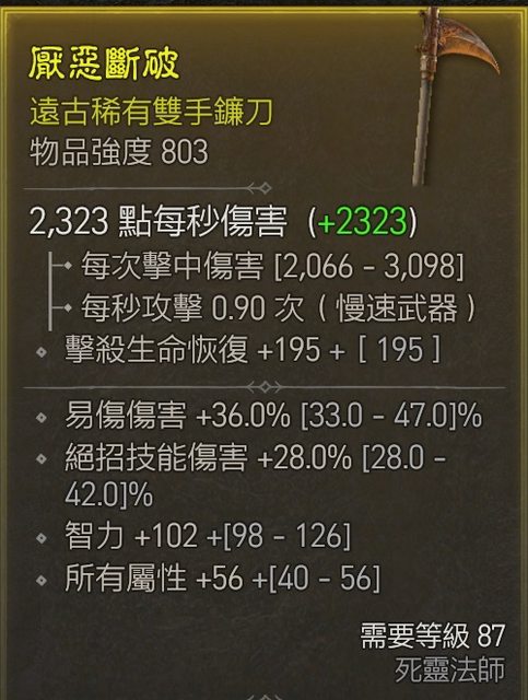 1. [500萬] 803雙手鐮刀 易傷/智力/全屬 LV87