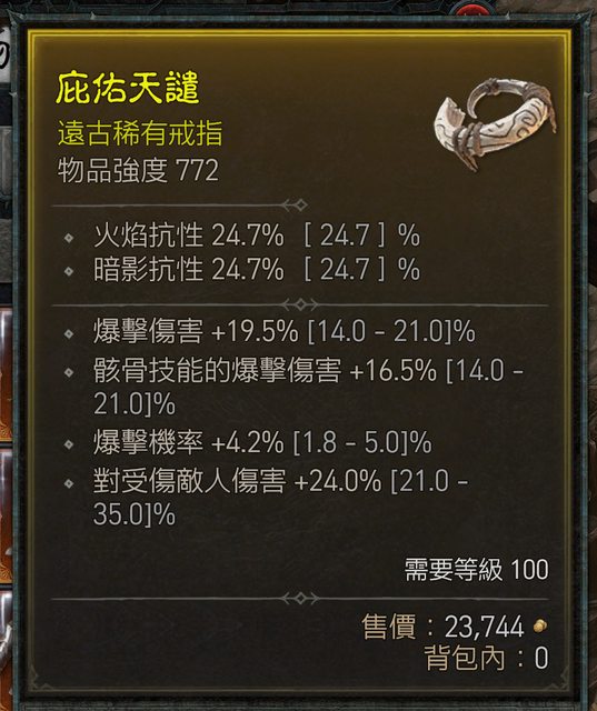 標題[競標] D4 死靈 爆擊 雙 爆傷 爆傷 戒指