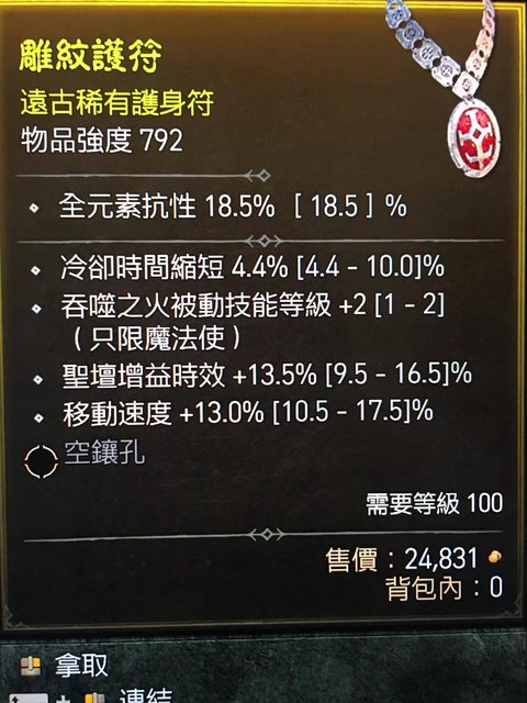 標題[競標] D4 法師 吞噬之火、跑速cdr項鍊