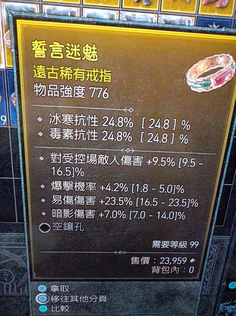 標題[競標] D4 易傷 爆率/爆傷 幸運 三個戒指