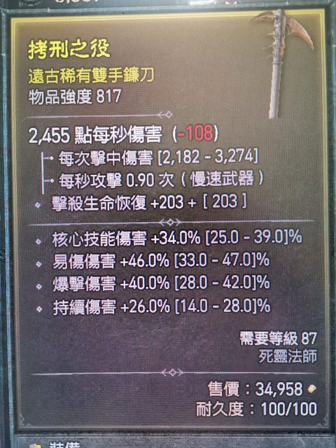 標題[交易] D4 賣死靈817雙手鐮刀咻咻咻(易傷/爆傷/